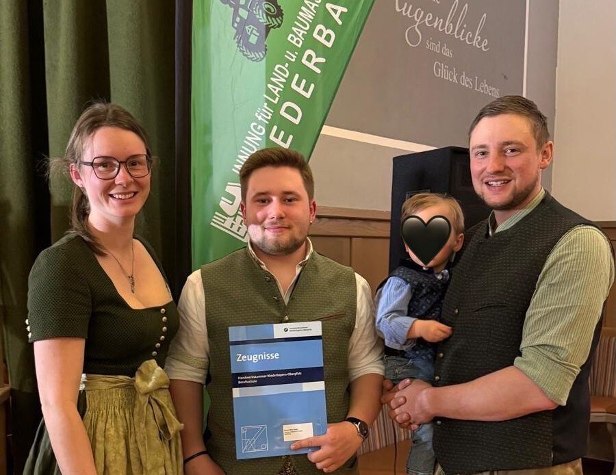Am Freitag durften wir unseren ehemaligen Azubi Max bei seiner Freisprechungsfeier in Gerzen begleiten. Max hat die Prüfungen zum Land- und Baumaschinenmechatroniker erfolgreich abgeschlossen und darf sich nun offiziell Geselle