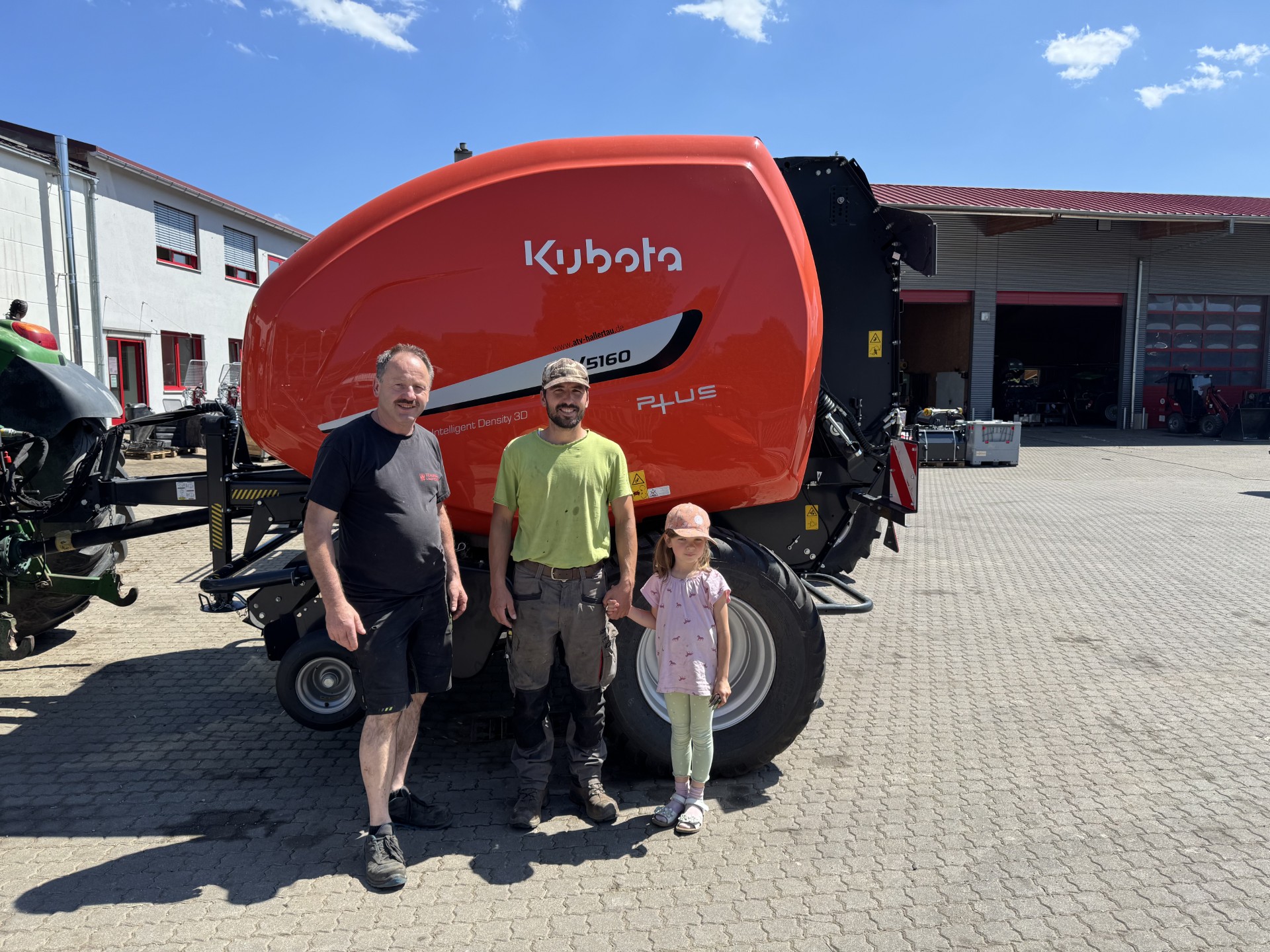 Ende Juni durfte bei der Riemensberger GbR eine Kubota Rundballenpresse BV5160 SC-14 Plus einziehen.