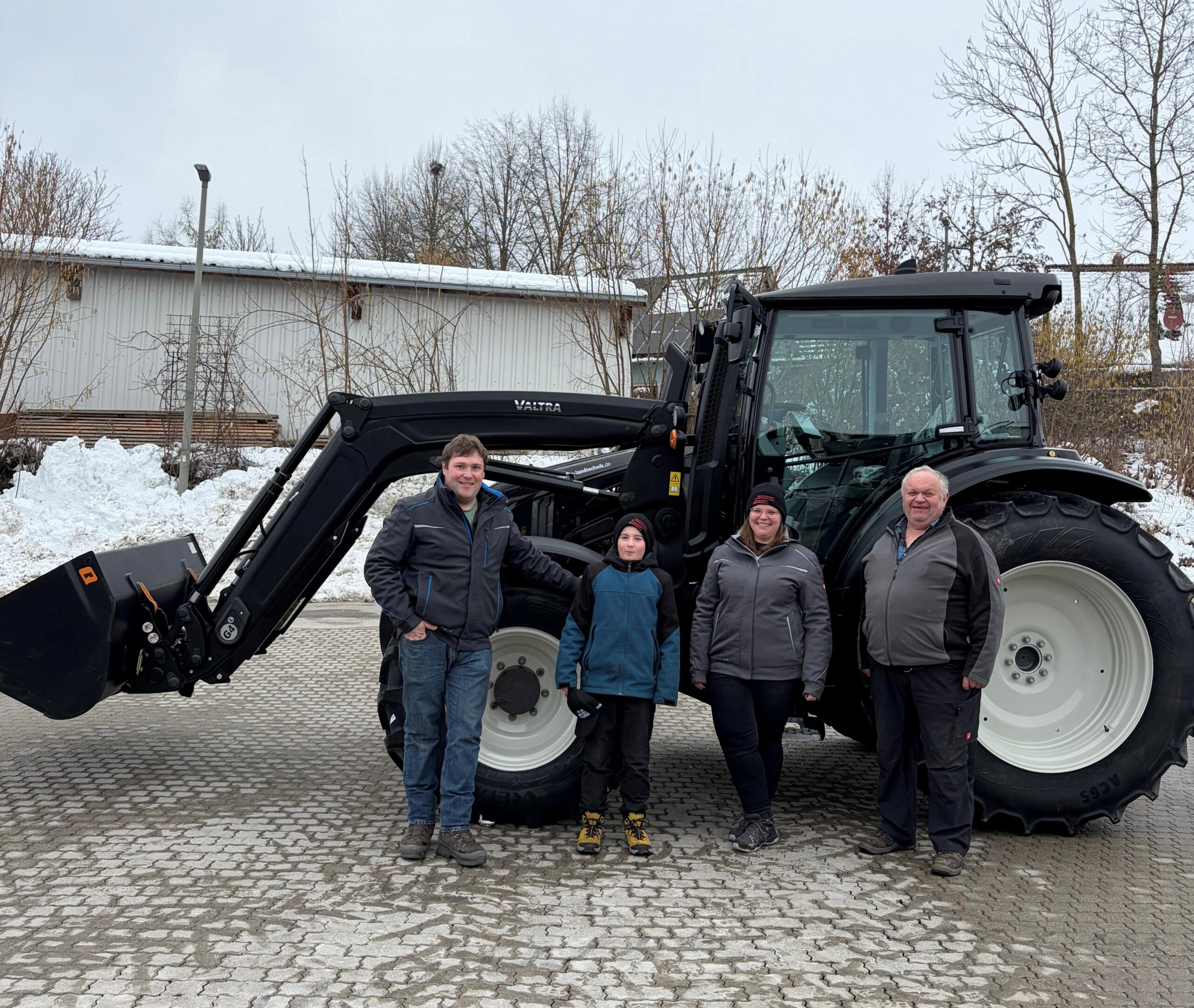 Familie Sixt freut sich seit Mitte Februar über einen Valtra Schlepper G125 in schwarz-metallic mit einem Frontlader G5S Multikuppler.